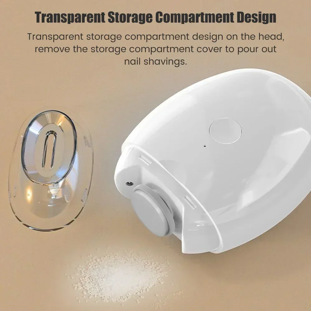 Transparent storage compartment design on the head, remove the storage compartment cover to pour out nail shavings.