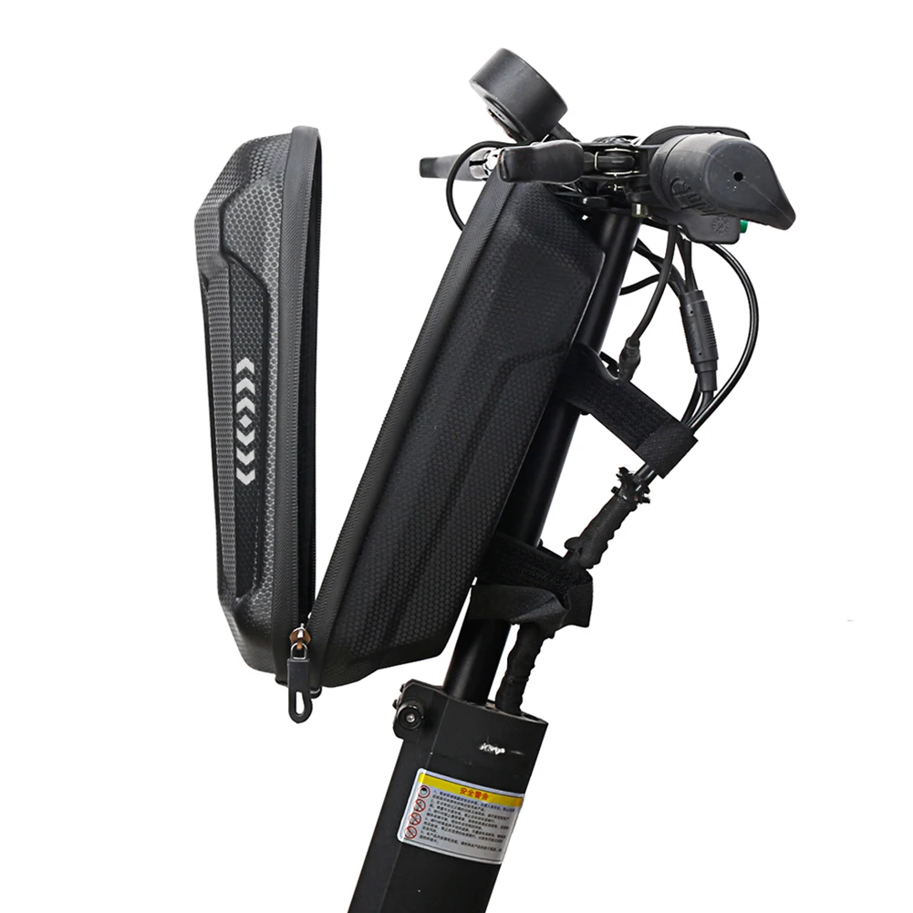 BENGGUO Electric Scooter Storage Bag 2L EVA Hard Shell Waterproof Scooter Handlebar Bag Night Reflective for M365 PRO 2 KUGOO M4 Feature: 1. EVA Hard Shell: The electric scooter bag is made with high-quality EVA hard shell that provides excellent protection against pressure and impact, ensuring your belongings stay safe. 2. Double Zipper Design: With its double zipper design, the electric scooter bag makes it convenient to access your items and provides additional security. 3. Large Capacity: The bag has ample storage space, making it perfect for storing various items such as phones, wallets, keys, and other personal belongings. 4. Waterproof Design: The bag uses a pressurized waterproof zipper and PU waterproof fabric, which can protect your belongings from light rain but not heavy rainfall. 5. Night Reflective Design: The electric scooter bag features a reflective logo on the surface, enhancing visibility when riding at night, ensuring a safer ride. Specification: Main material: EVA+PU Product color: black Product specification: approximately 2L Product size: approximately 250x125x90mm/9.84x4.92x3.54in Net weight of product: approximately 176g